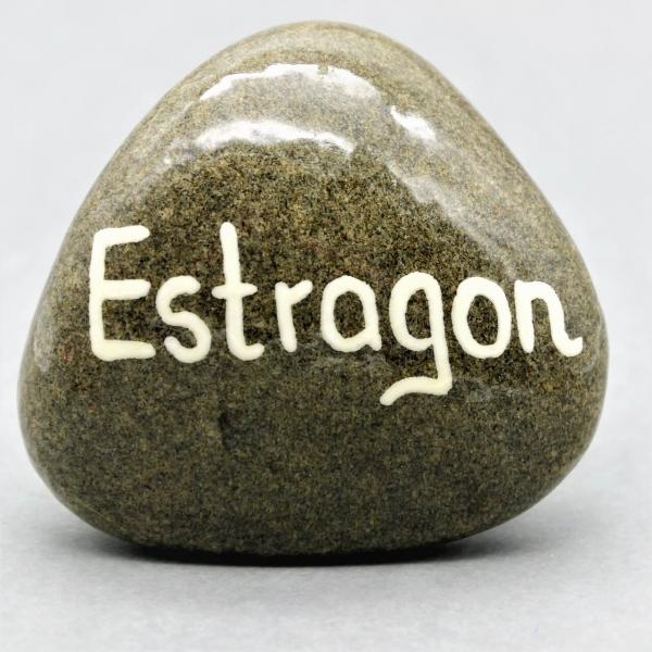 Kräutersteinmit dem Wort Estragon für Kräutergarten oder Balkon