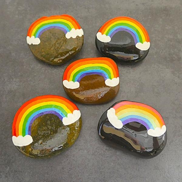 Grabschmuck und Grabbeigabe mit handbemalten Regenbogen und Wunschtext personalisierbar