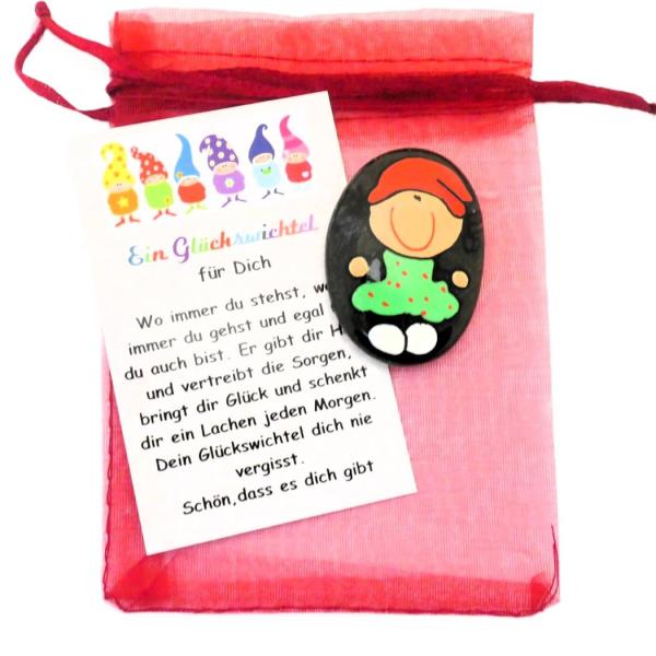 Ein bischen Glück können wir alle gebrauchen, daher braucht jeder einen von Hand bemalten Glückswichtel - Glücksstein. Der Glücksbringer Stein ist ca. 4 - 5 cm groß mit einer Geschenkkarte im Organza-Säckchen. Hier bekommst du deinen persönlichen Glücksbringer von Hand auf Stein gemalt. Bemalte Steine sind ein schönes Mitbringsel für einen Kindergeburtstag.
